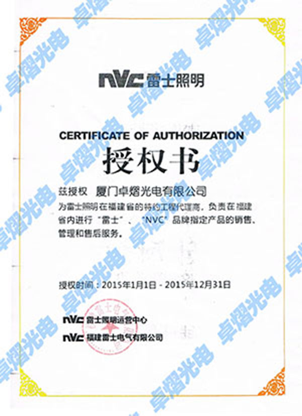 热烈庆祝卓熠光电公司为雷士照明福建区特约工程代理商。